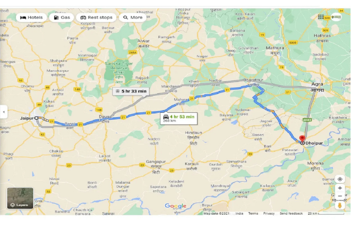 - Jaipur → NH21 → Bharatpur → Dholpur